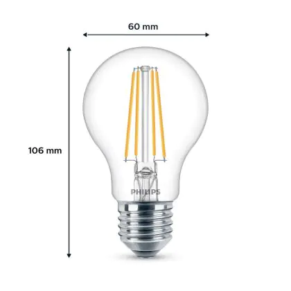 La Confezione Multipack 3x Philips Bulbo LED E27 Pera Filamento Chiara 7W 850lm - 840 Bianco Freddo è la perfetta sostituzione per la tua lampada convenzionale W con attacco E27 grazie alla sua tecnologia LED. Passare a LED ti offrirà tanti vantaggi!