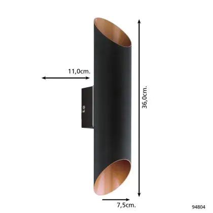 Descrizione Eglo Luce Da Parete Agolada Esterni Acciaio Zincato Nero, Rame 7.4W 660lm - 830 Luce Calda -