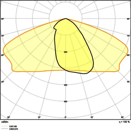 L'alloggiamento impermeabile di questa sorgente luminosa non è l'unica ragione per cui è perfetta per l'uso all'aperto. Infatti bisogna considerare anche la distribuzione della luce di questa lampada stradale, che ha apertura del fascio luminoso di 25x145° ed emette luce di colore 3000K - Luce Calda.