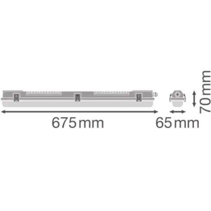 Questa reglette  ha una lunghezza di 675mm e tecnologia Apparecchio senza lampadina. Inoltre ha una durata di circa  ore un wattaggio di solo  Watt. Questo apparecchio di illuminazione durerà quindi molto a lungo, consumando poca energia.