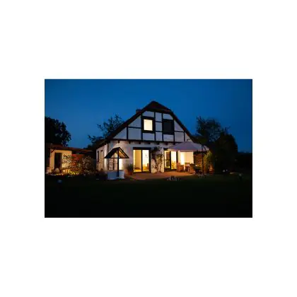 Benché questo apparecchio LED sia progettato per spazi esterni, è bene ricordare che esistono delle differenze per quanto riguarda il grado di impermeabilità, indicato dal valore IP. Per esempio gli apparecchi con valore IP44 sono resistenti agli spruzzi e umidità, ma non alle forti piogge e getti d’acqua diretti. Solo a partire dal grado IP65 un apparecchio di illuminazione può resistere a questa situazione. Tieni quindi conto del valore IP quando decidi dove posizionare le tue fonti di luce. Gli apparecchi IP44, per esempio, possono essere posizionati sotto una tettoia. Il valore IP di questo apparecchio è di IP44.