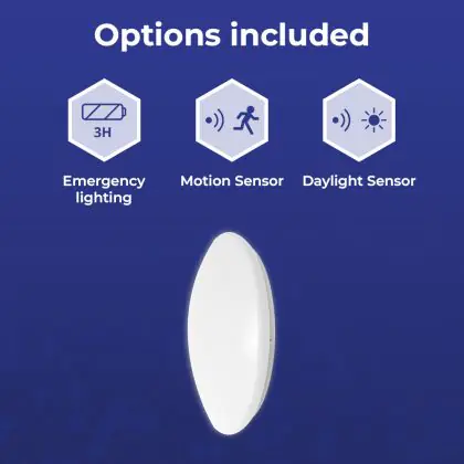 Descrizione Noxion Bulkhead LED Corido V2 Bianca 12/16/20W 2000lm 830-840-865 CCT | IP44 - Sensore di Movimento e Luce - Emergenza 3H