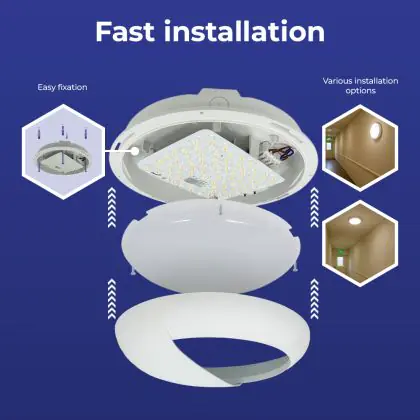 Prima di sostituire un vecchio apparecchio di illuminazione con uno nuovo è sempre consigliabile controllare le dimensioni. Installare questa plafoniera LED è molto facile: basta leggere attentamente le istruzioni e utilizzare il materiale di installazione fornito (viti, tasselli, ecc.). Se hai dubbi sull’installazione consulta un installatore certificato. Per questa lampada offriamo una garanzia di 6 anni