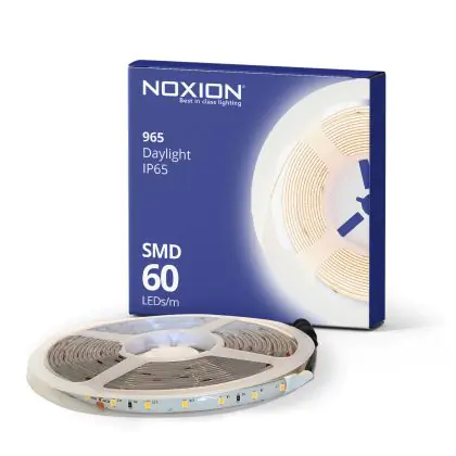 Con questa striscia LED di Noxion puoi illuminare ogni ambiente nel modo giusto. Infatti, le strisce LED possono essere posizionate anche negli angoli delle stanze e possono essere accorciate, tagliandoli nei punti appositi, o anche unite fra loro in modo da illuminare spazi molto estesi. Inoltre, si può scegliere tra vari colori di luce, che rende questa fonte di illuminazione adatta sia alle case che alle aziende. Questa striscia LED è 6500K - Luce del Giorno.