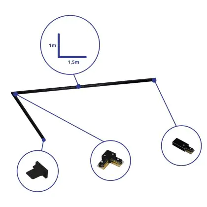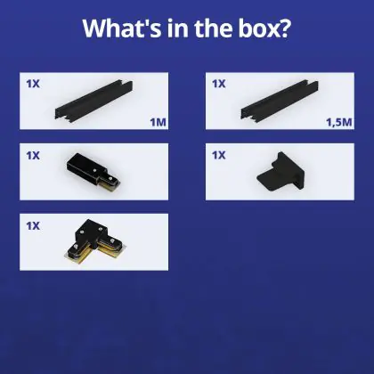Rail Set 1-Fase L 1 x 1,5 Metro Nero | incl. Tappo Di Chiusura, Connettore di Alimentazione e L -Connettore
